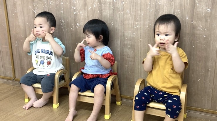 「Head, Shoulders, Knees and Toes」では歌詞に合わせてその体の部分をタッチしました🥰