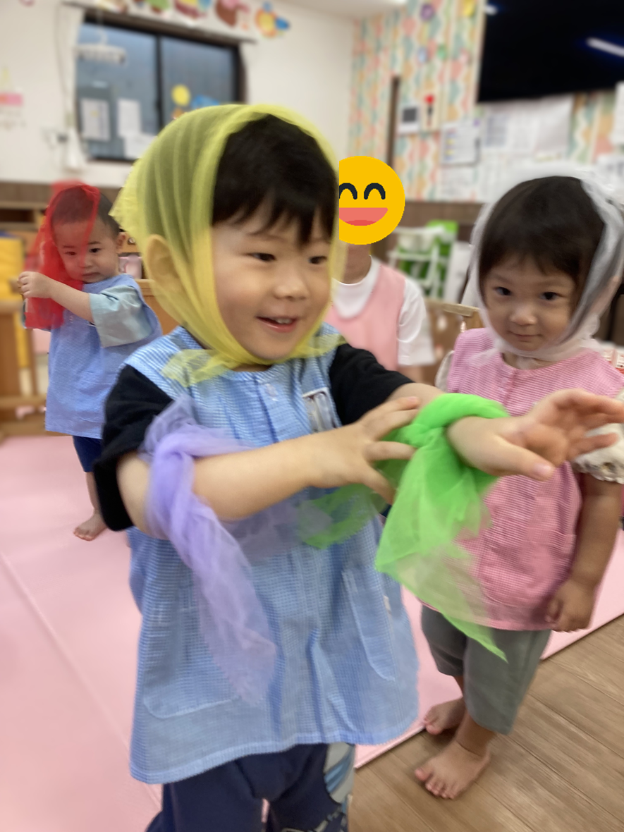 こちらはリトミックスカーフで遊ぶさくら組さんです(๑•ᴗ•๑)♡