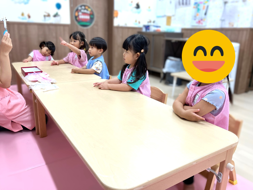 スズランテープに触れて感触を楽しんだり、割いて細くしたり、引っ張ったり、ヒラヒラ降らしたりと思い思いに遊びました🎶